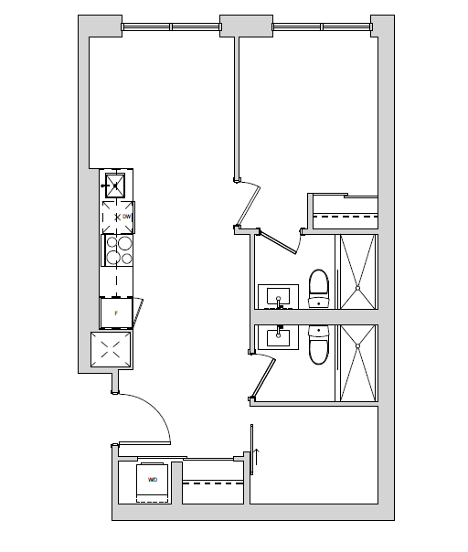 内嵌式不锈钢厨房电器,木地板通铺,卫生间是Vanity countertop,餐客一体开放式,光线明亮,落地大窗,Den带推拉门可做第二卧房。
